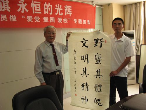 文教授的报告以自身经历为线索,利用生动事例教导在座党员建立爱党、爱国、爱校的忠贞信仰和为体育教育事业奋斗一生的坚定信念。他希望研究生多读书,勤思考,同时勉励大家在事业进取中坚信“人生没有终点,永远是起点”的人生哲理。文教授的精彩讲座不时赢得与会师生的阵阵掌声。